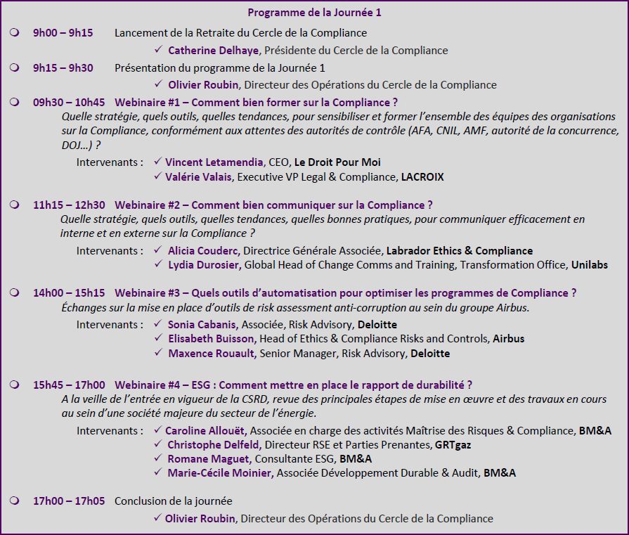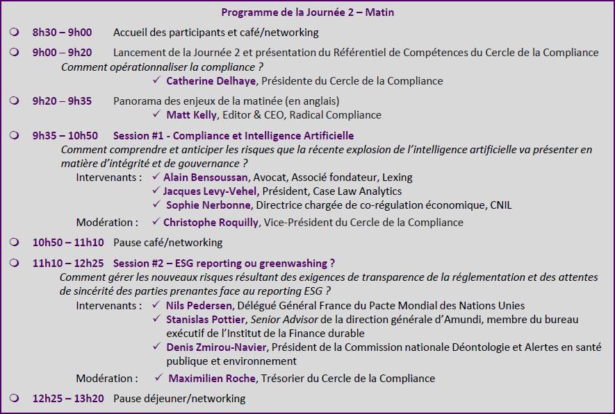 | 9H00 – 13H00 : LES COMPÉTENCES ET LES OUTILS DE LA DIRECTION COMPLIANCE |