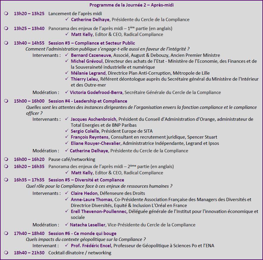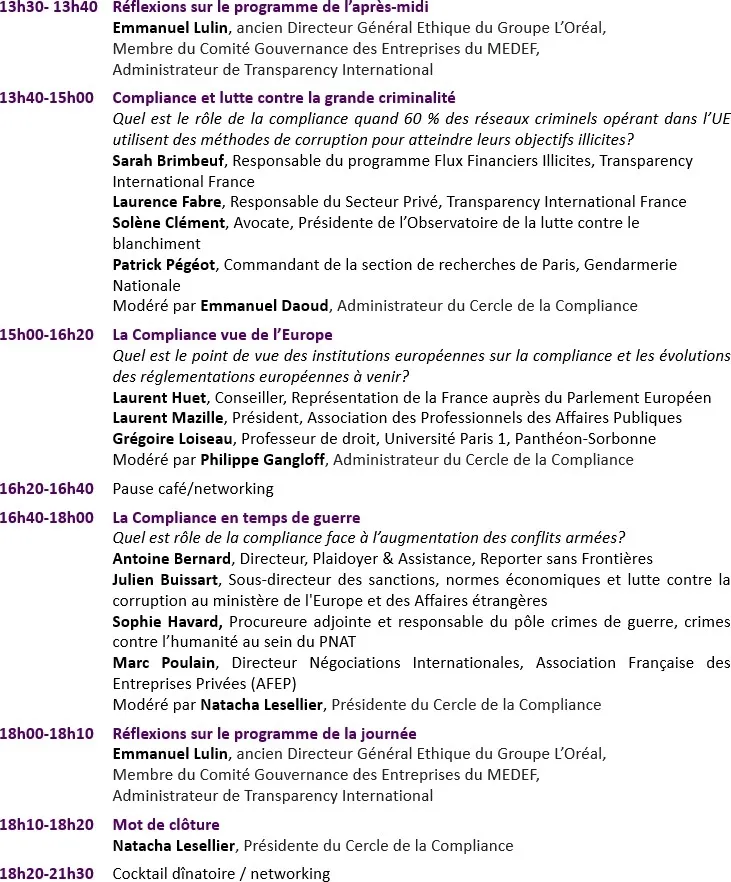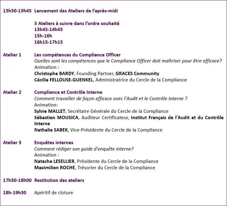 | 14H00 – 18H00 : LA COMPLIANCE ET LES PARTIES PRENANTES |